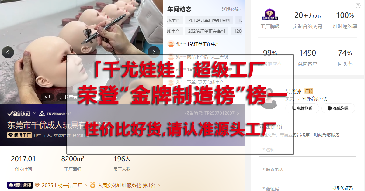 【千尤娃娃】出货量TOP1工厂重磅上新!会聊天的仿真娃娃,细节逼真到窒息